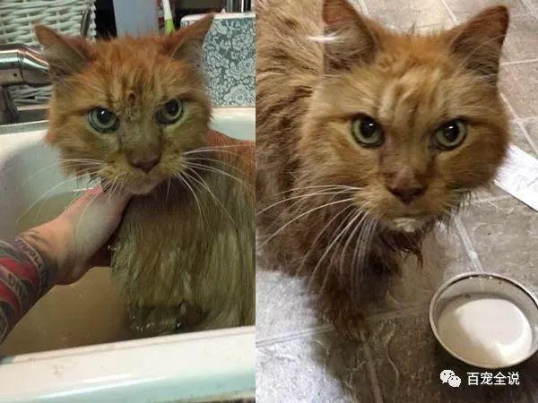 20岁老猫知道自己有家了好开心 连洗澡都在呼噜噜 按照人类年纪相当于100岁了